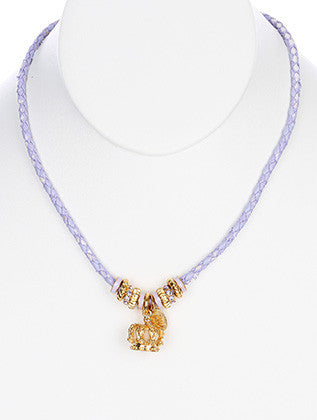 NECKLACE / BRAIDED CORD / METAL CROWN PENDANT / CUTOUT / METALLIC RING BEAD / CRYSTAL STONE / EPOXY COAT / TWISTED / TEXTURED / 16 INCH LONG / 1 INCH DROP / NICKEL AND LEAD COMPLIANT
