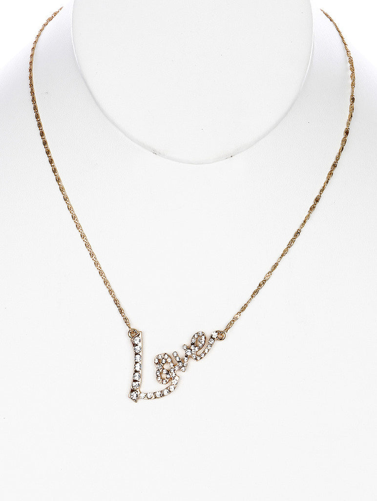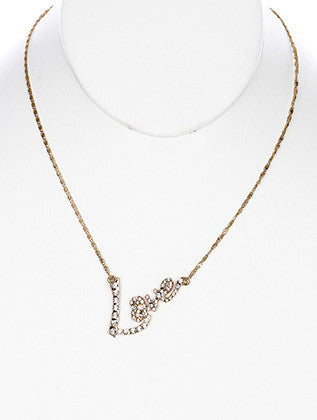 NECKLACE / LINK / METAL / CRYSTAL STONE / MESSAGE / LOVE / 1 INCH DROP / 18 INCH LONG / NICKEL AND LEAD COMPLIANT