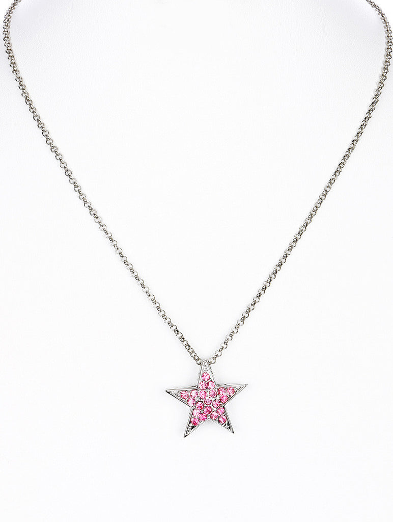 NECKLACE / PAVE CRYSTAL STONE / STAR / CHAIN / 18 INCH LONG / 1 INCH DROP / NICKEL AND LEAD COMPLIANT