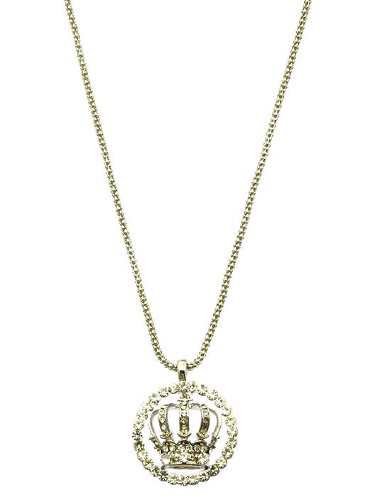 NECKLACE / CRYSTAL STONE / CROWN PENDANT / POPCORN CHAIN / 18 INCH LONG / 1 1/2 INCH DROP / NICKEL AND LEAD COMPLIANT