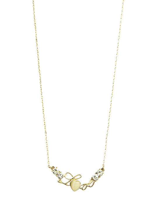 NECKLACE / CRYSTAL STONE / METAL LOVE BIB / HOMAICA / LINK / CHAIN / 16 INCH LONG / 1/4 INCH DROP / NICKEL AND LEAD COMPLIANT