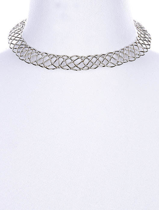 NECKLACE / INTERTWINED METAL / CHOKER / OPEN END / 8 INCH LONG / 1/2 INCH DROP / NICKEL AND LEAD COMPLIANT