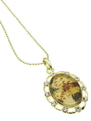 NECKLACE / VICTORIAN STYLE / METAL FRAME PENDANT / MARBLE FINISH / LUCITE / CRYSTAL STONE / LINK / CHAIN / 18 INCH LONG / 1 1/4 INCH DROP / NICKEL AND LEAD COMPLIANT