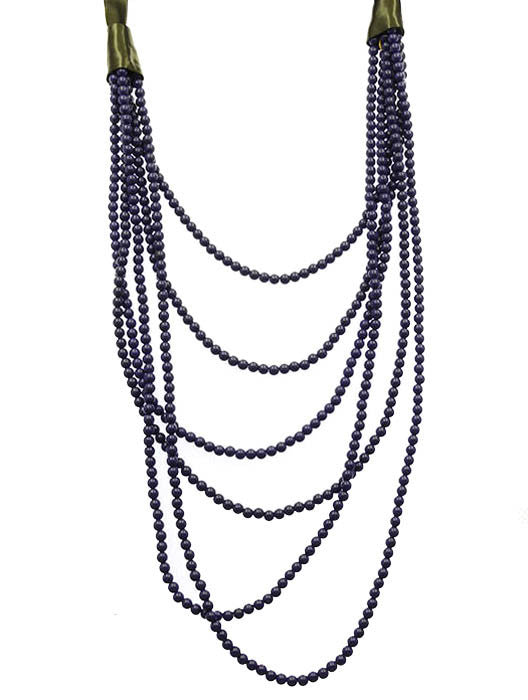 NECKLACE / MULTI LAYER / MULTI STRAND / HOMAICA BEAD / FAUX LEATHER STRAP / 26 INCH LONG / 8 INCH DROP / NICKEL AND LEAD COMPLIANT