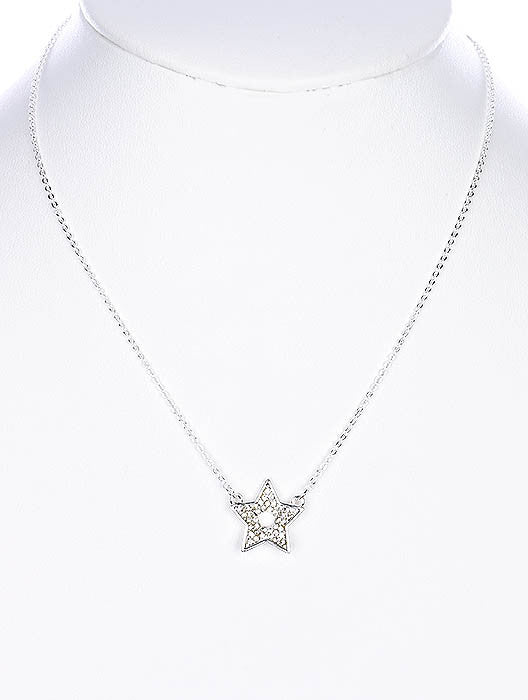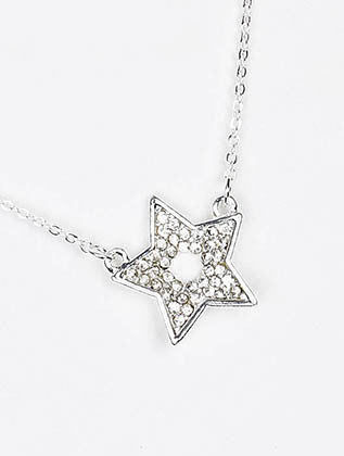 NECKLACE / STAR / LINK / BRASS / CRYSTAL STONE PAVED / 1/2 INCH DROP / 16 INCH LONG / NICKEL AND LEAD COMPLIANT