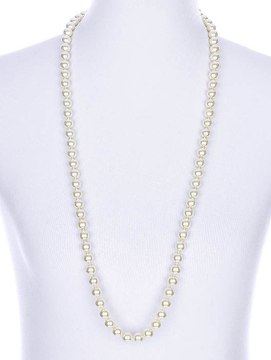 NECKLACE / GLASS PEARL / LINK / BRASS / 1/3 INCH DROP / 48 INCH LONG / NICKEL AND LEAD COMPLIANT