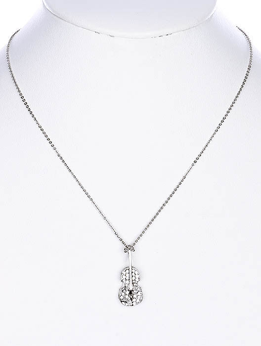 NECKLACE / GUITAR / LINK / BRASS / CRYSTAL STONE PAVED / 1 INCH DROP / 17 INCH LONG / NICKEL AND LEAD COMPLIANT