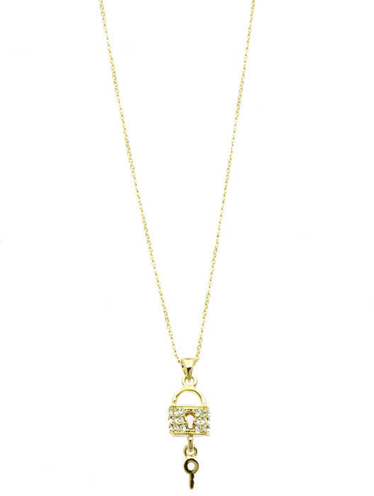 NECKLACE / PAVE CRYSTAL STONE / LOCKET AND KEY PENDANT / METAL / LINK / CHAIN / 16 INCH LONG / 1 1/4 INCH DROP / NICKEL AND LEAD COMPLIANT