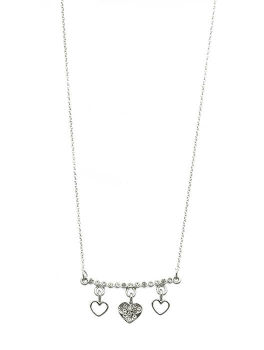 NECKLACE / PAVE CRYSTAL STONE / METAL HEART CHARM / CUTOUT / LINK / CHAIN / 16 INCH LONG / 1/2 INCH DROP / NICKEL AND LEAD COMPLIANT