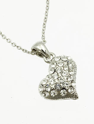 NECKLACE / HEART / LINK / BRASS / CRYSTAL STONE PAVED / 3/4 INCH DROP / 17 INCH LONG / NICKEL AND LEAD COMPLIANT