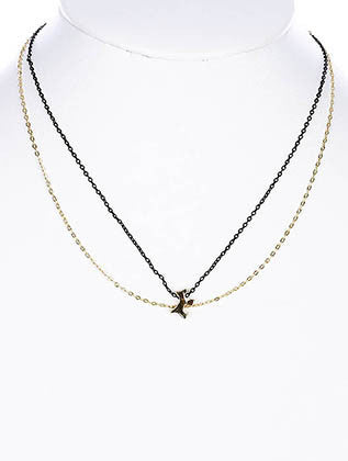 NECKLACE / CUBIC ZIRCONIA / LINK / BRASS / DOUBLE STRANDED / DOG CHARM / 1/4 INCH DROP / 16 INCH LONG / NICKEL AND LEAD COMPLIANT