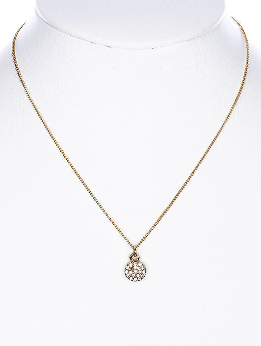 NECKLACE / CRYSTAL STONE PAVED / LINK / BRASS / 1/3 INCH DROP / 16 INCH LONG / NICKEL AND LEAD COMPLIANT