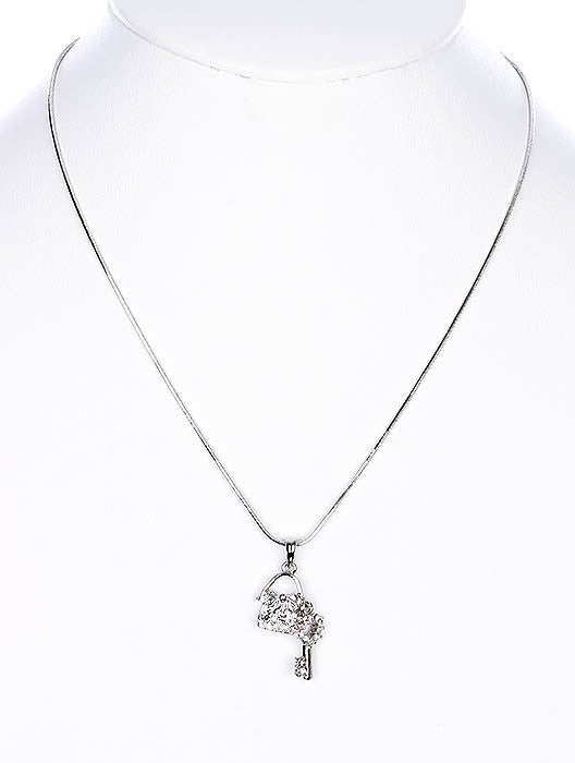 NECKLACE / PURSE CHARMS / LINK / BRASS / CRYSTAL STONE PAVED / 1 1/4 INCH DROP / 17 INCH LONG / NICKEL AND LEAD COMPLIANT