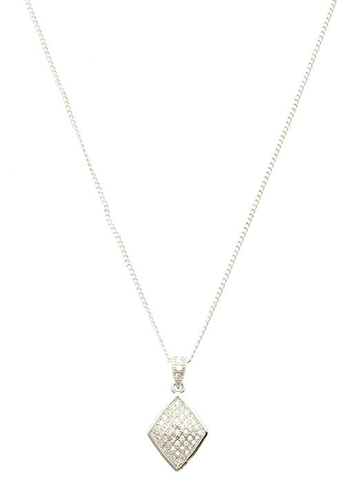 NECKLACE / CUBIC ZIRCONIA / DIAMOND SHAPE PENDANT / LINK / CHAIN / 16 INCH LONG / 1 INCH DROP / NICKEL AND LEAD COMPLIANT