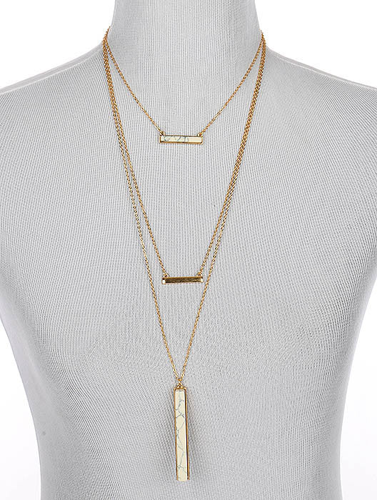 NECKLACE / RECTANGULAR NATURAL STONE / THREE LAYER / METAL FRAME / LINK / CHAIN / 16 INCH LONG / 10 INCH DROP / NICKEL AND LEAD COMPLIANT