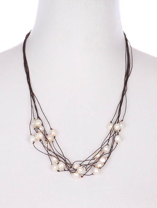 NECKLACE / ADJUSTABLE MULTI CORD / BIB / PEARL / MICRO METAL BEAD / KNOTTED / 18 INCH LONG / 1/2 INCH DROP / NICKEL AND LEAD COMPLIANT