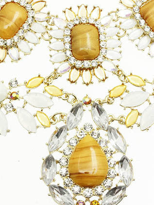 NECKLACE / SHOUROUK STYLE / CHUNKY BIB / HOMAICA / NATURAL / CRYSTAL STONE / LINK / CHAIN / 18 INCH LONG / 4 INCH DROP / NICKEL AND LEAD COMPLIANT