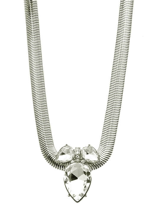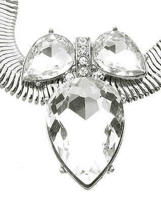 NECKLACE / FACETED HOMAICA STONE / SNAKE CHAIN / PEAR CUT / PAVE CRYSTAL STONE / 16 INCH LONG / 1 1/2 INCH DROP / NICKEL AND LEAD COMPLIANT