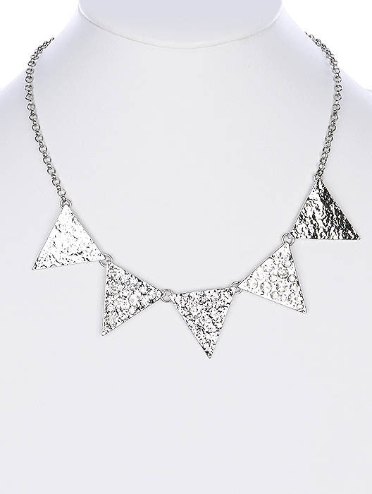 NECKLACE / CRYSTAL STONE / LINK / HAMMERED METAL / TRIANGLES / 1 INCH DROP / 16 INCH LONG / NICKEL AND LEAD COMPLIANT