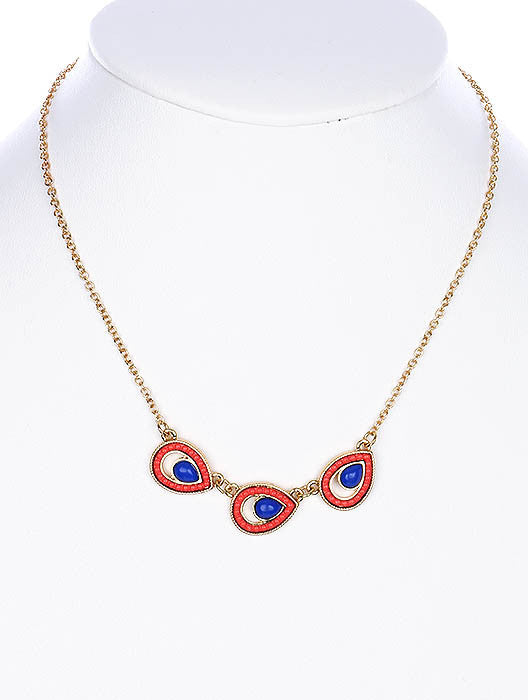 NECKLACE / TEARDROP / LINK / TEXTURE METAL / LUCITE BEAD / 1/2 INCH DROP / 16 INCH LONG / NICKEL AND LEAD COMPLIANT