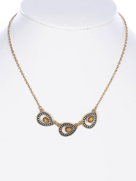 NECKLACE / TEARDROP / LINK / TEXTURE METAL / LUCITE BEAD / 1/2 INCH DROP / 16 INCH LONG / NICKEL AND LEAD COMPLIANT