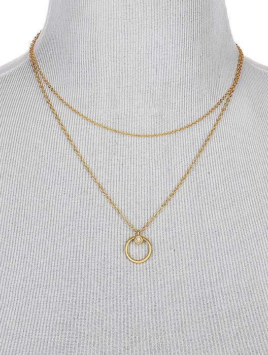 NECKLACE / MATTE FINISH METAL RING / DOUBLE LAYER / PEARL / LINK / CHAIN / 16 INCH LONG / 2 1/2 INCH DROP / NICKEL AND LEAD COMPLIANT