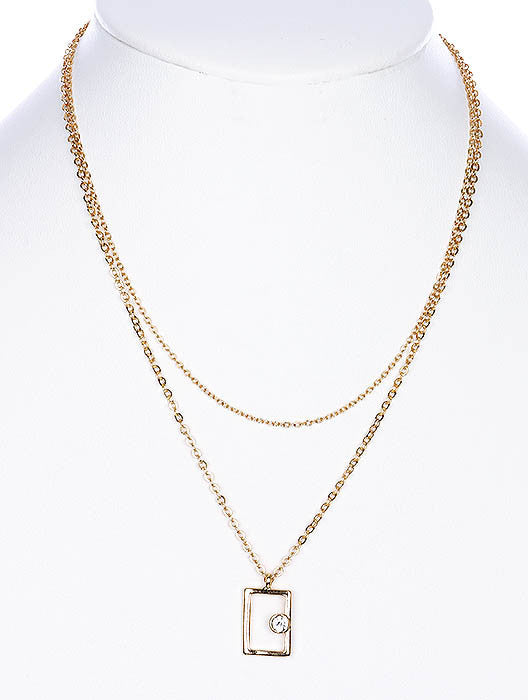 NECKLACE / DOUBLE LAYERED / RECTAGULAR PENDANT / CRYSTAL STONE / LINK / CHAIN / 16 INCH LONG / 1 3/4 INCH DROP / NICKEL AND LEAD COMPLIANT