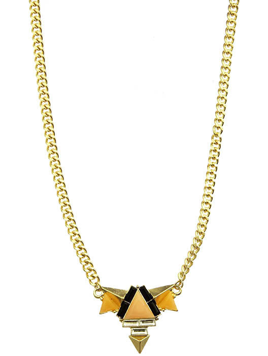 NECKLACE / GEOMETRIC HOMAICA STONE / BIB / METAL SETTING / LINK / CHAIN / 16 INCH LONG / 1 1/4 INCH DROP / NICKEL AND LEAD COMPLIANT