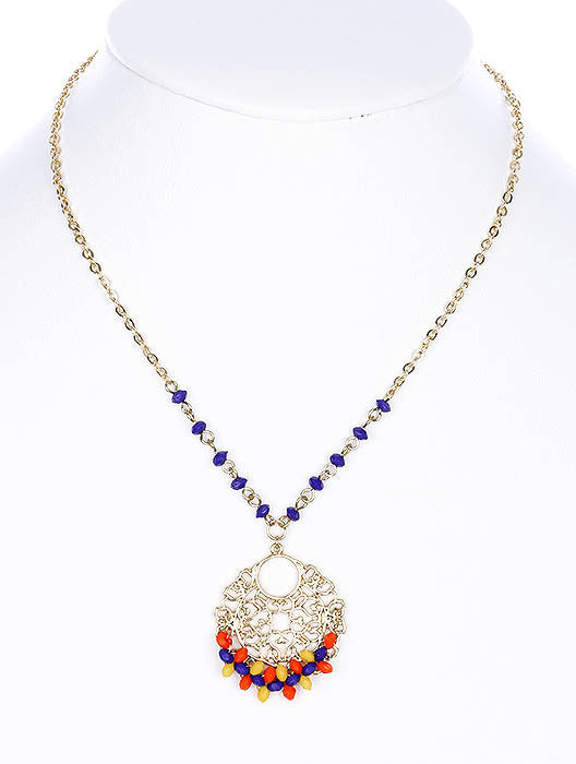 NECKLACE / LINK / ROUND / HEART / METAL / METAL CHAIN / LUCITE BEAD / 1 1/4 INCH DROP / 16 INCH LONG / NICKEL AND LEAD COMPLIANT