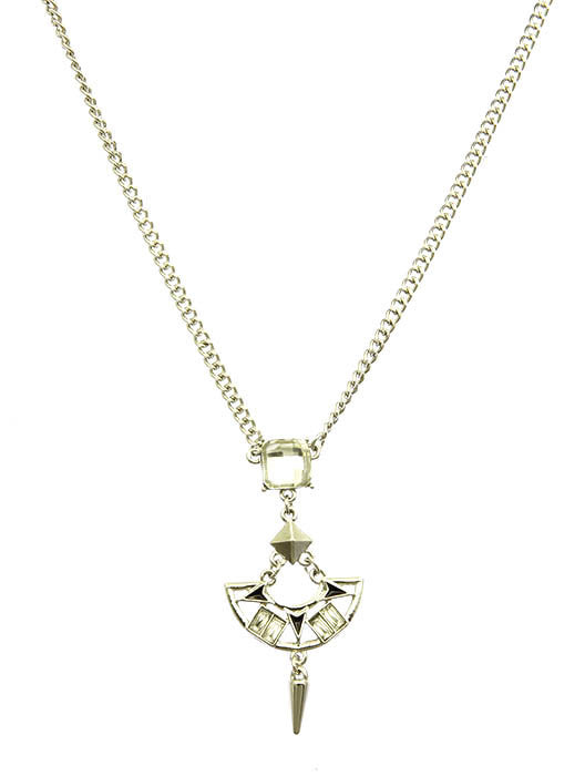 NECKLACE / FACTED HOMAICA STONE / CUTOUT METAL / SPIKE / EPOXY / LINK / CHAIN / 16 INCH LONG / 2 1/4 INCH DROP / NICKEL AND LEAD COMPLIANT