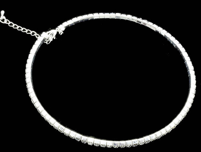 NECKLACE / CHOKER / LINK / METAL / RHINESTONE / 4 1/4 INCH WIDE / NICKEL AND LEAD COMPLIANT