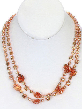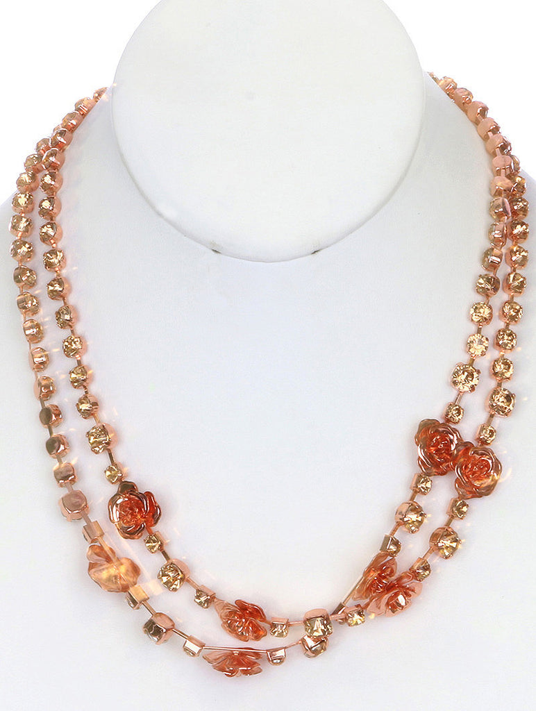NECKLACE / RHINESTONE / LINK / METAL / FLOWER / ROSE / 1/6 INCH DROP / 21 INCH LONG / NICKEL AND LEAD COMPLIANT