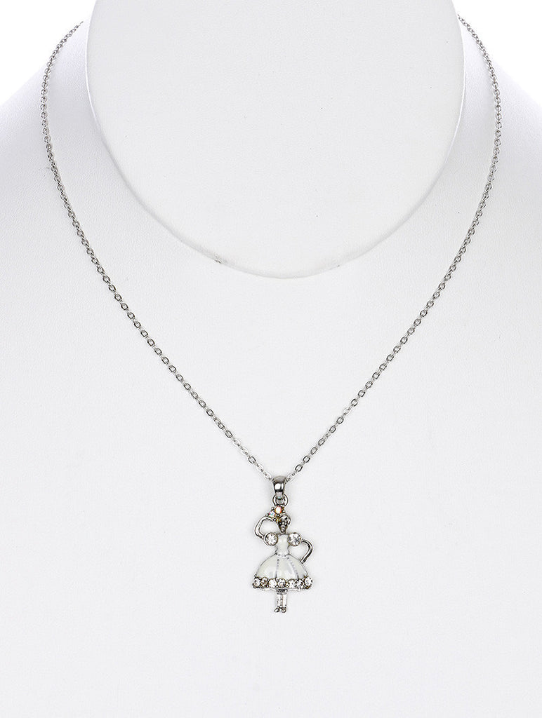 NECKLACE / GIRL CHARM / LINK / METAL / EPOXY / CRYSTAL STONE / 1 INCH DROP / 16 INCH LONG / NICKEL AND LEAD COMPLIANT