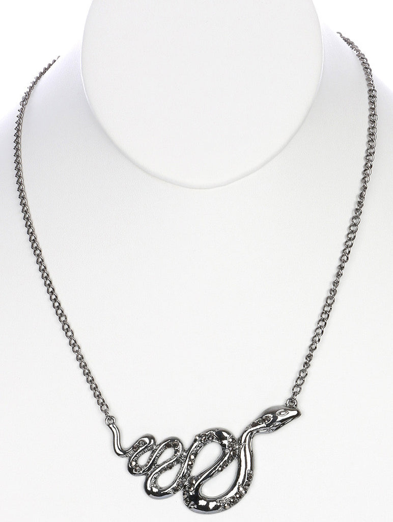 NECKLACE / METAL SNAKE / BIB / METALLIC STONE / LINK / CHAIN / 16 INCH LONG / 1 1/4 INCH DROP / NICKEL AND LEAD COMPLIANT