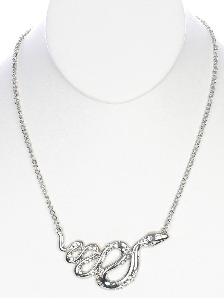 NECKLACE / METAL SNAKE / BIB / METALLIC STONE / LINK / CHAIN / 16 INCH LONG / 1 1/4 INCH DROP / NICKEL AND LEAD COMPLIANT