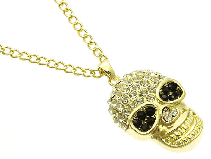 NECKLACE / SKULL / LINK / METAL / CRYSTAL STONE PAVED / 2 1/4 INCH DROP / 27 INCH LONG / NICKEL AND LEAD COMPLIANT / HALLOWEEN