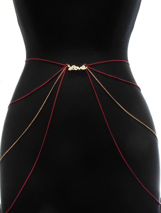 NECKLACE / LOVE / BELT / MULTI CHAIN / CRYSTAL STONE / MULTI LAYER / METAL / 32 INCH LONG / NICKEL AND LEAD COMPLIANT