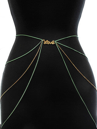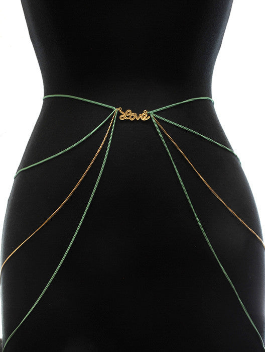 NECKLACE / LOVE / BELT / MULTI CHAIN / CRYSTAL STONE / MULTI LAYER / METAL / 32 INCH LONG / NICKEL AND LEAD COMPLIANT