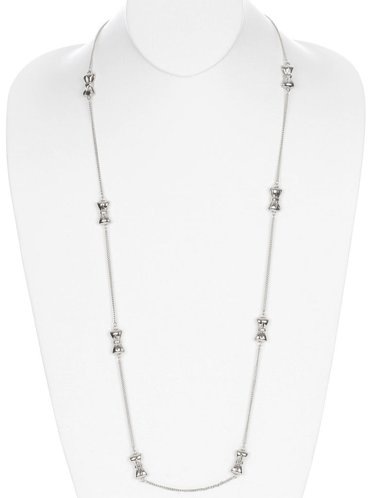 NECKLACE / METAL BOW / LONG CHAIN / LINK / 38 INCH LONG / NICKEL AND LEAD COMPLIANT