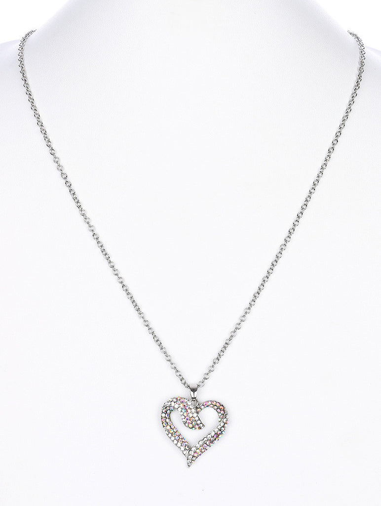 NECKLACE / HEART / PAVE CRYSTAL STONE / METAL SETTING / LINK / CHAIN / 28 INCH LONG / 1 1/2 INCH DROP / NICKEL AND LEAD COMPLIANT