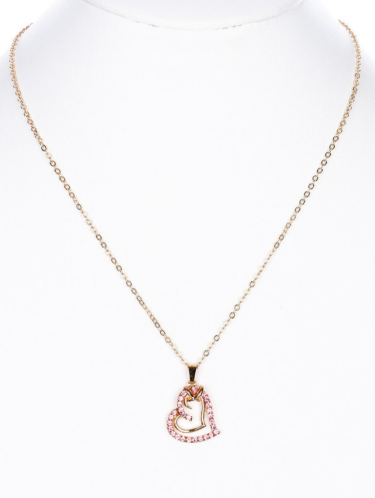 NECKLACE / INTERTWINED DOUBLE HEART / PAVE CRYSTAL STONE / METAL SETTING / LINK / CHAIN / 18 INCH LONG / 1 INCH DROP / NICKEL AND LEAD COMPLIANT