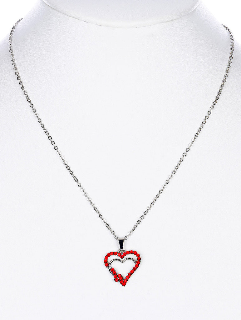 NECKLACE / INTERTWINED DOUBLE HEART / PAVE CRYSTAL STONE / METAL SETTING / LINK / CHAIN / 18 INCH LONG / 1 INCH DROP / NICKEL AND LEAD COMPLIANT