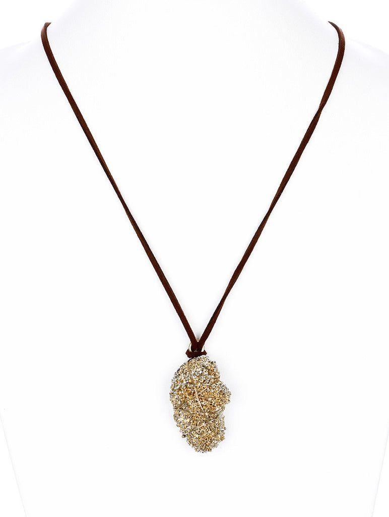 NECKLACE / NATURAL STONE PENDANT / ADJUSTABLE / WIRED / FAUX SUEDE STRAND / 30 INCH LONG / 2 1/4 INCH DROP / NICKEL AND LEAD COMPLIANT