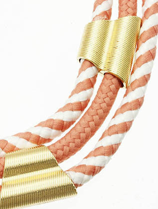 NECKLACE / THREE LAYER / BRAIDED ROPE / TEXTURED METAL CLAMP / 14 INCH LONG / 1 INCH DROP / NICKEL AND LEAD COMPLIANT