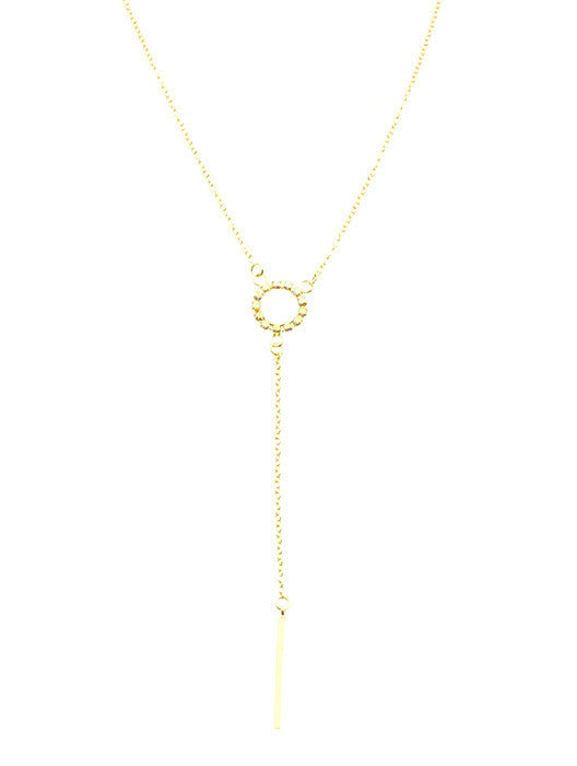NECKLACE / METAL ROD AND RING / Y / AURORA STONE / LINK / CHAIN / 16 INCH LONG / 4 INCH DROP / NICKEL AND LEAD COMPLIANT
