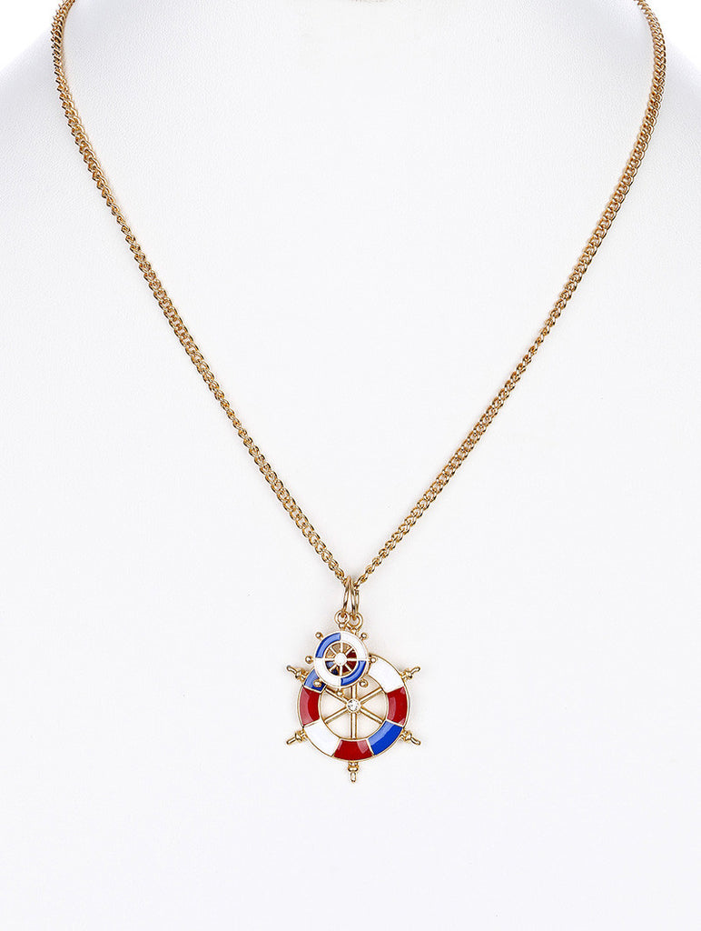 NECKLACE / METAL ANCHOR / SHIP WHEEL PENDANT / EPOXY / LINK / CHAIN / 18 INCH LONG / 1 1/2 INCH DROP / NICKEL AND LEAD COMPLIANT