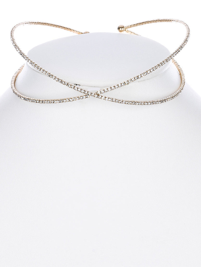 NECKLACE / PAVE CRYSTAL STONE / COIL COLLAR / 4 INCH DIAMETER / 1 1/4 INCH TALL / NICKEL AND LEAD COMPLIANT