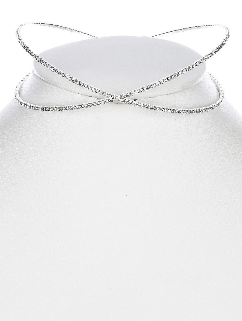 NECKLACE / PAVE CRYSTAL STONE / COIL COLLAR / 4 INCH DIAMETER / 1 1/4 INCH TALL / NICKEL AND LEAD COMPLIANT