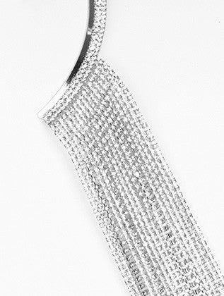 NECKLACE / LONG RHINESTONE FRINGE / METAL CHOKER / MULTI STRAND / 5 INCH DIAMETER / 6 INCH DROP / NICKEL AND LEAD COMPLIANT