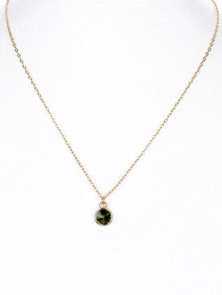 NECKLACE / GLASS STONE / PENDANT / LINK / CHAIN / 16 INCH LONG / 1 1/2 INCH DROP / NICKEL AND LEAD COMPLIANT